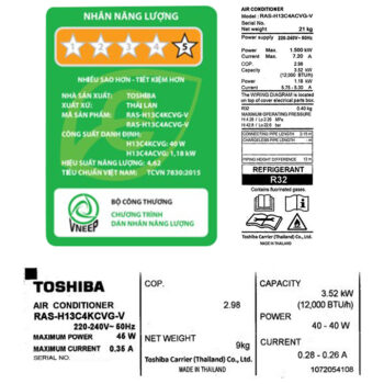 – Nhãn năng lượng: 5 sao (hiệu suất năng lượng 4.33).
